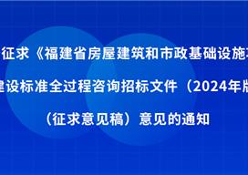 为规范福建省房屋建筑和市政基础设施项目工程建设全过程咨询活动,近日,福建省住房和城乡建设厅发布关于征求《福建省房屋建筑和 ...